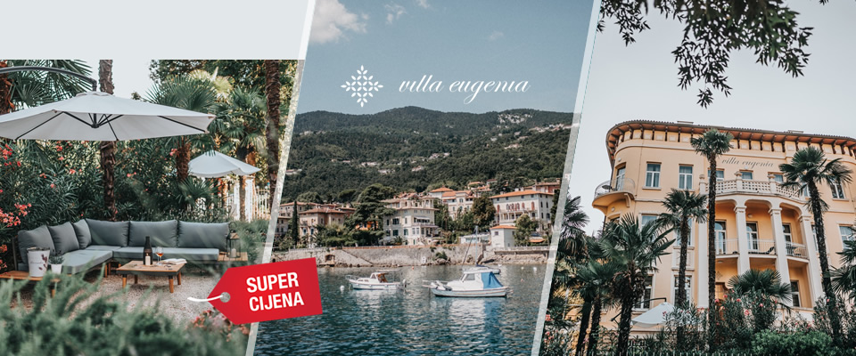 Villa Eugenia 4* je moderan boutique hotel smješten na predivnoj obali Kvarnera, u blizini prekrasnih plaža. Hotel je izgrađen u secesijskom stilu davne 1910. godine za predstavnika Austro-Ugarske aristokracije, a u potpunosti je preuređen 2003. godine, prema najvišim standardima modernog hotelijerstva. Pristup hotelu omogućen je sa dvije strane: glavni ulaz kroz mediteranski vrt, te sporedni ulaz s parkirališta koje sa 18 parkirnih mjesta prati smještajni kapacitet objekta.
