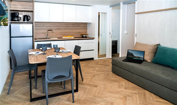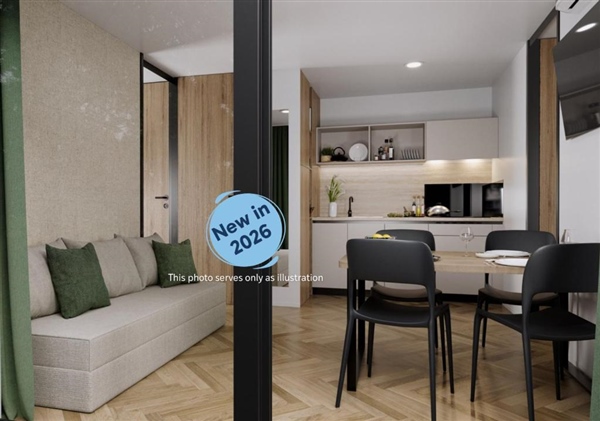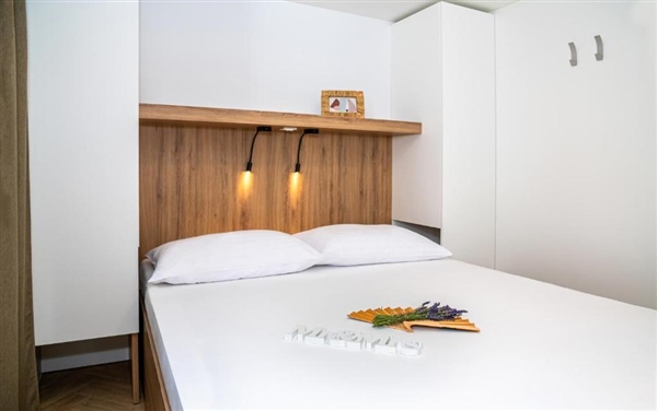 Smještene u mirnom, zadnjem redu kampa, ove potpuno nove i moderno opremljene mobilne kućice pružaju savršen odmor na svega 200 metara od pješčane plaže. S površinom od 34 m², idealne su za smještaj do 5 osoba (4 odrasle osobe i jedno dijete) te su u potpunosti prilagođene potrebama moderne obitelji, uključujući i vaše kućne ljubimce.