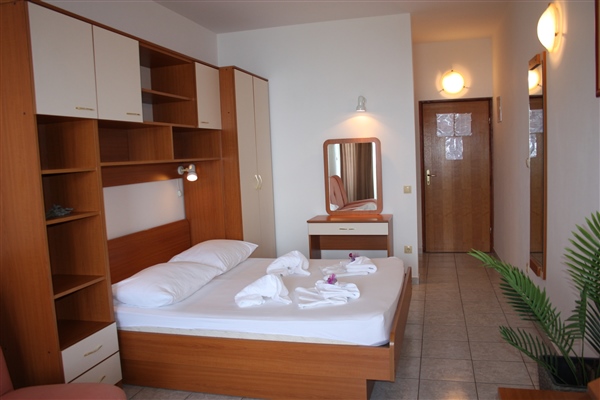 Studio apartmani tipa 2+2 opremljeni su funkcionalno i s pažnjom na detalje – udoban bračni krevet, sofa na razvlačenje, mini kuhinja, privatni balkon, klima uređaj, besplatan Wi-Fi i SAT TV čine boravak ugodnim i bezbrižnim. Svakom gostu osigurano je i besplatno parkirno mjesto – jer vaš komfor počinje od dolaska.