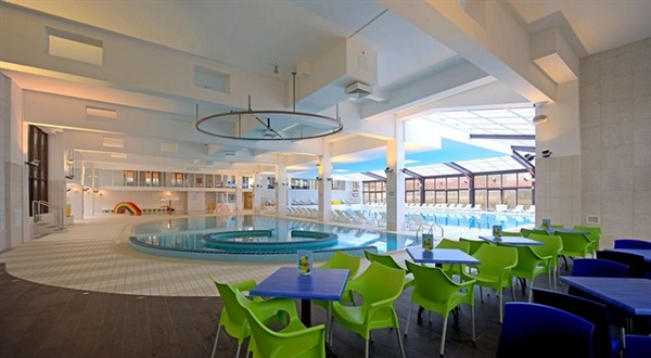 Unutarnji vodeni park s prirodnom termalnom vodom otvoren je cijele godine te nudi plivački bazen, hidromasažni bazen, dječji bazen s toboganima, bazen za bebe i rekreacijski bazen. Termalna voda izvorne temperature 38°C sadrži više različitih iona te se smatra ljekovitom mineralnom vodom.