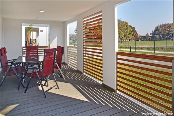 Suvremeno opremljene mobilne kućice veličine su 36 m² + 18 m² natkrivene terase. Imaju 2 kupaonice (WC i tuš), 1 spavaću sobu s bračnim ležajem, 1 spavaću sobu s razdvojenim ležajevima, dnevni boravak s dodatnim rasklopivim ležajem, kompletno opremljenu kuhinju (hladnjak, indukcijska ploča za kuhanje, mikrovalna pećnica), klimu, IPTV, LED TV, WI-FI i terasu sa sjedećom garniturom i ležaljkama.