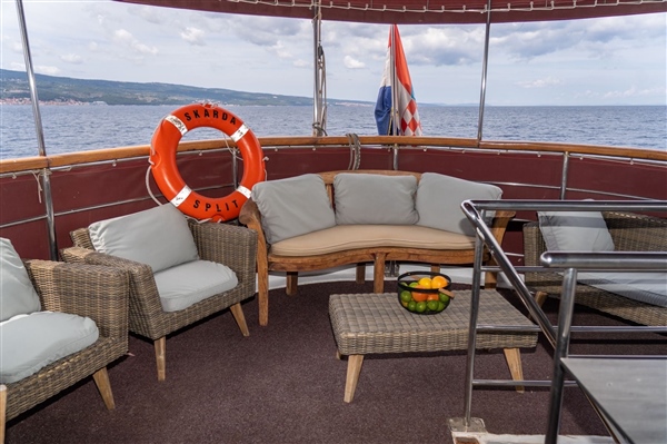 Brod Skarda je tradicionalni drveni motorni brod s 15 kabina, 3 u potpalublju i 12 na glavnoj palubi, svaka s vlastitom kupaonicom. Gostima su na raspolaganju sunčana paluba s ležaljkama, zajednička blagovaonica, SUP daske, Wi-Fi u zajedničkim prostorijama te iskusna i ljubazna posada.