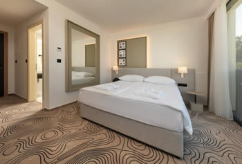 Superior dvokrevetna soba s pogledom na park površine od 26 do 30 m² pruža prostrano utočište s pogledom na umirujuće zelenilo hrvatske prirode. Soba je opremljena iznimno udobnim bračnim ili odvojenim krevetima, uz mogućnost dodatnog ležaja, osiguravajući savršen odmor za svakog gosta. Elegantna unutrašnjost nadopunjena je kupaonicom vrhunskog dizajna koja nudi sve potrebno za duboko opuštanje, dok spoj komfora i profinjenosti jamči luksuzan doživljaj boravka.