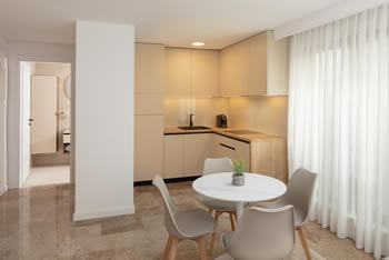 Topao i ugodan apartman površine između 41 i 48 m² predstavlja idealan izbor za cijelu obitelj. Funkcionalnost i zajedništvo u središtu su ovog prostora koji uključuje kompletno opremljenu kuhinju i blagovaonicu, savršene za pripremu obroka i zajedničke trenutke veselja. Spavaći dio s raskošnim bračnim krevetom nudi pogled na slikovite ljepote okruženja, dok luksuzno uređena kupaonica služi kao privatno utočište za opuštanje nakon dana provedenog u istraživanju obale. Uz vrhunsku opremljenost i dovoljno prostora za sve članove, ovaj suite osigurava osjećaj doma uz sve pogodnosti hotela prve klase.