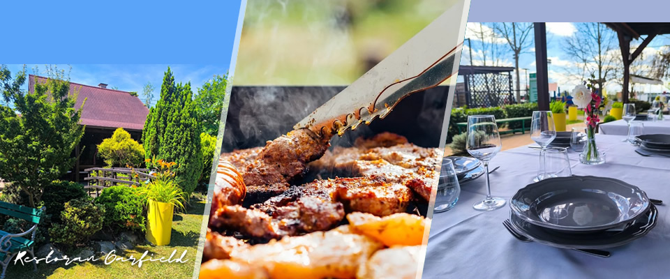 Restoran Garfield najstariji je objekt izletišta. Uspješno radi već punih 20 godina. Čine ga tri sale, vrtna terasa, vinoteka, dječja igraonica, šank na otvorenom, roštilj i pečenjara na otvorenom.