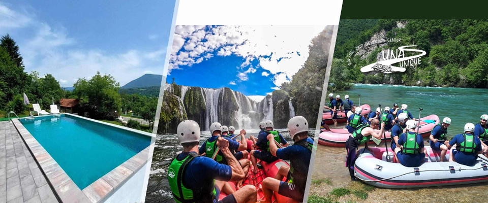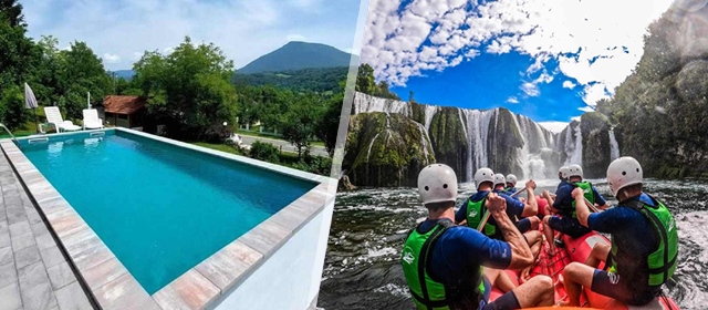 Ponuda uključuje: nezaboravan odmor za 1 osobu u centru Una Unique uz rafting: 1x noćenje s doručkom u vili s bazenom + rafting na rijeci Uni (rajska ruta Kostela – Grmuša) + skiper, osiguranje, oprema za rafting i prijevoz natrag do mjesta sastanka ili po dogovoru s grupom