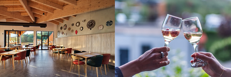 U sklopu kampa nalazi se restoran modernog interijera sa kapacitetom od 160 sjedećih mjesta u kojem možete degustirati široku ponudu lokalnih delicija koji će zaokružiti doživljaj boravka u kampu sa autohtonim etno-gastronomskim užitkom.